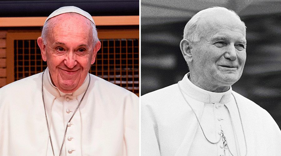 | Papa Francisco e São João Paulo II / Crédito: Daniel Ibañez (ACI Prensa) e Rob Croes - Wikimedia Commons (CC BY 4.0) |